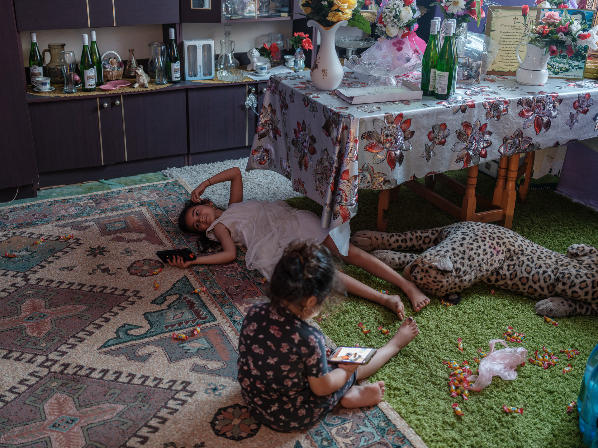 Mâncăm în livingul din apartamentul lui Ilie și al lui Țucă, pentru care plătesc 1.000 de euro chirie. Mura se scuză că n-a putut să gătească cu doi copii mici care vor permanent în brațe și ne servește cu ouă prăjite, cârnați, brânză telemea și mezeluri de La Doi Boi. Casa e plină: au venit în vizită și nașii Esterei, Elena și Dominic, care locuiesc tot în Bruxelles, iar azi a sosit din Corcova unchiul Costică, fratele lui Ilie, în vârstă de 45 de ani. O să rămână câteva luni în Belgia și va dormi în pat cu Ilie – are nevoie de bani și o să lucreze în construcții împreună cu Ilie și Țucă, care sunt zugravi, la fel ca Geo.