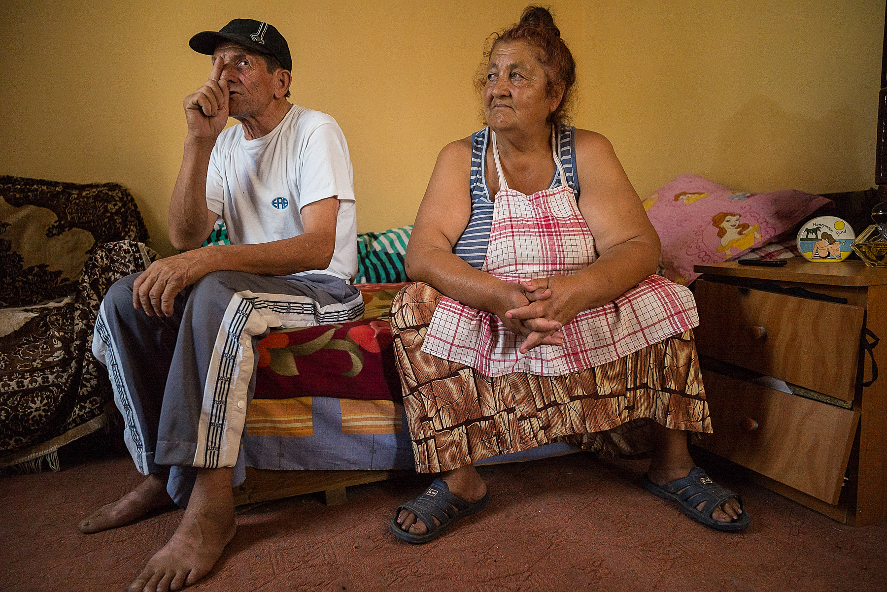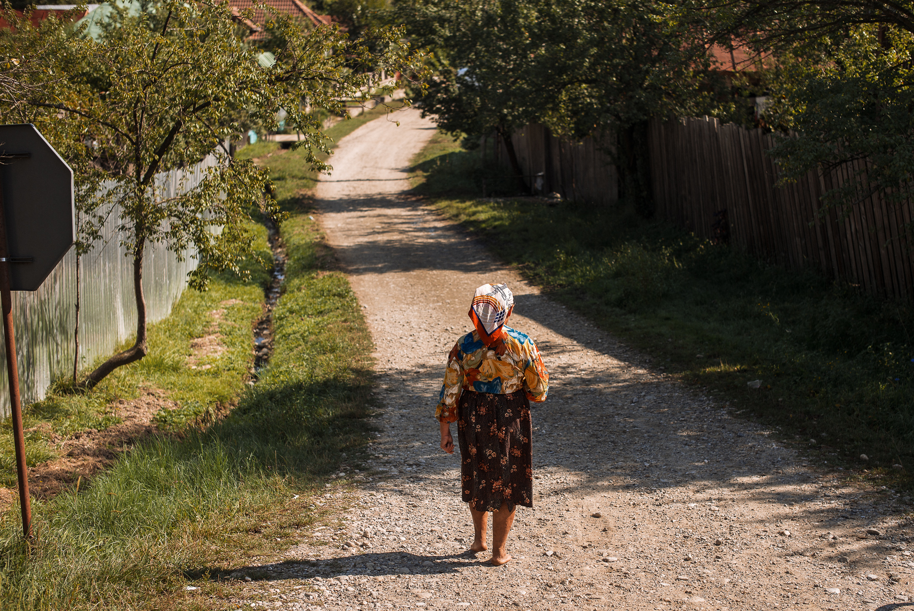 Elena, o femeie de 91 de ani din satul Găvănești, comuna Bălești, stă întinsă pe pat, în încăperea din care n-a mai ieșit de cinci ani. N-are televizor; în cameră sunt doar un pat, un scaun și o masă plină cu lucruri vechi. Femeia e conștientă, dar nu mai poate să meargă, așa că stă singură ore întregi, uitându-se la pereți. Singurătatea îi e întreruptă doar de două ori pe zi când fiica ei, care locuiește la câteva case distanță, vine să-i dea de mâncare și s-o schimbe.