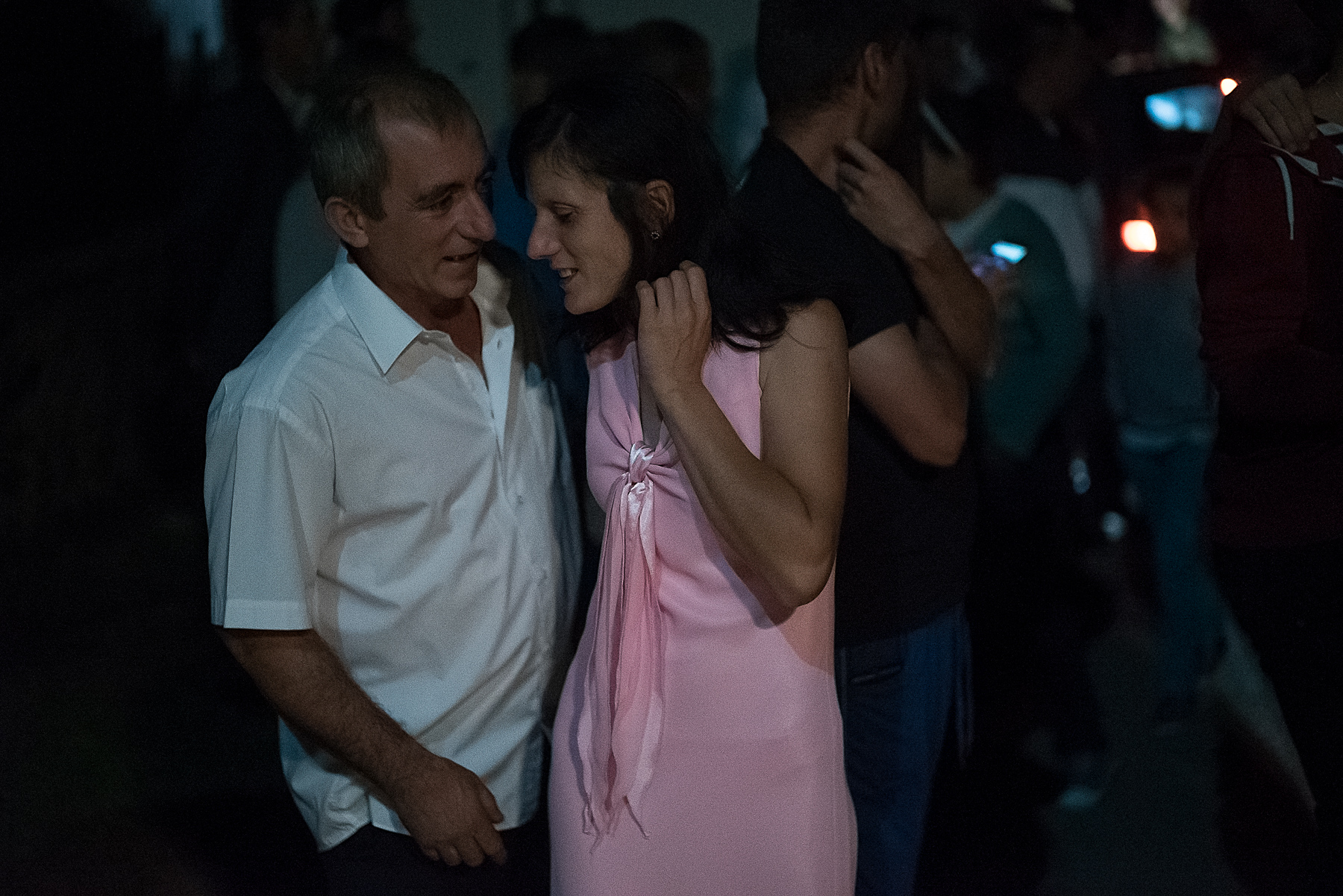 Crina trage puțin de pleoapă și își aplică fardul gri până sus, aproape de sprânceană. Își desenează conturul ochilor cu un creion negru și se dă cu rimel, atentă să nu i se lipească genele. Alege un ruj deschis la culoare și își freacă buzele una de alta. E îmbrăcată într-o rochie de seară neagră, decoltată, cu mâneci din dantelă, pe care o va purta până la miezul nopții, când o să se schimbe în blugi și sacou. Își pune cercei lungi și lănțișorul de aur pe care l-a primit de la mama ei înainte să se mărite. Se piaptănă și părul ei negru și drept, proaspăt spălat, se electrizează.