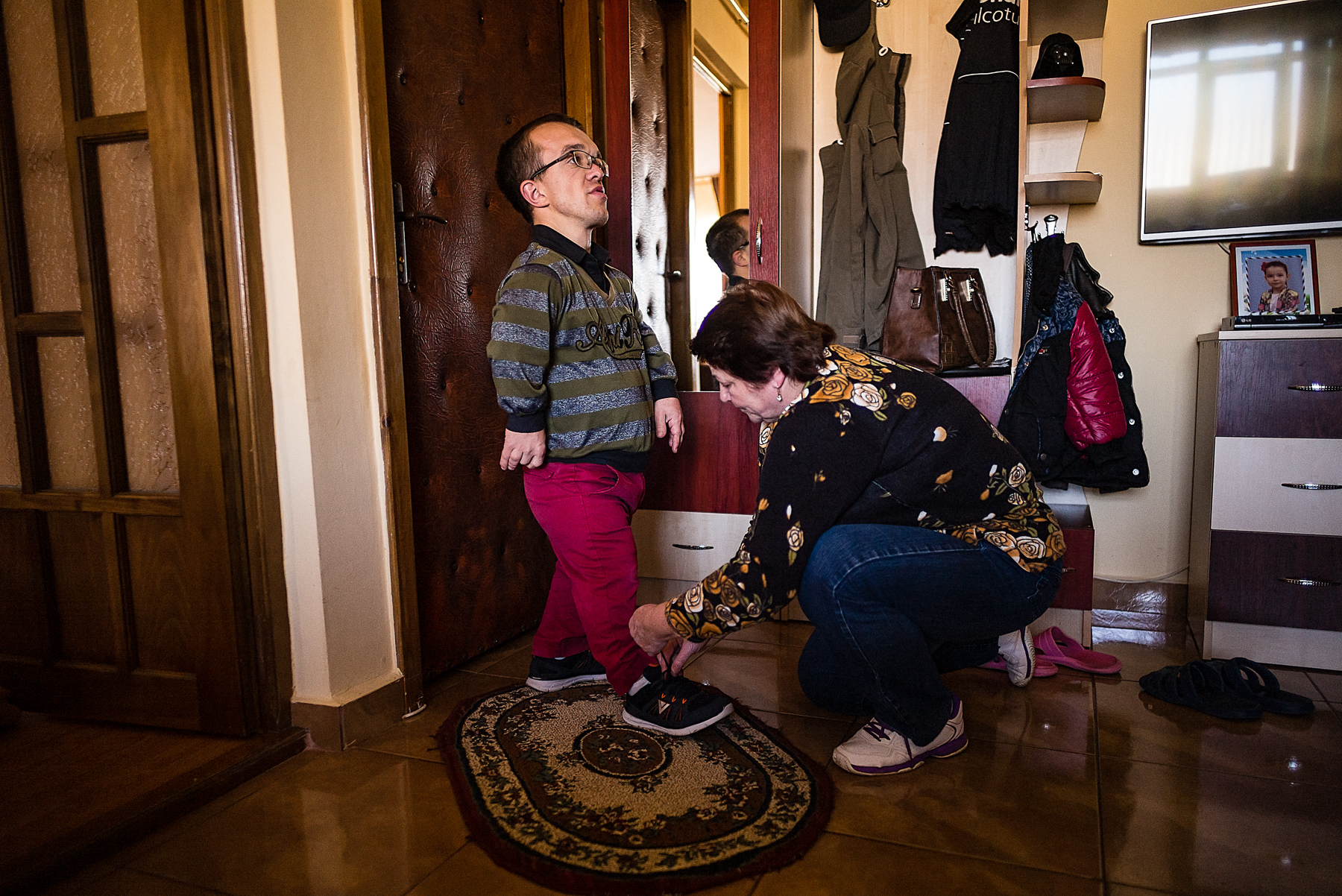 De ani de zile, sunt doar ele două. Dorm împreună, mănâncă împreună, se uită la televizor împreună. Doina nu e încă divorțată, dar soțul ei a plecat de mult timp din țară. Nu are prieteni și nu iese în oraș, pentru că n-ar avea cu cine s-o lase pe fiica ei. De 19 ani, de când s-a născut Denisa, Doina a lipsit doar patru zile de lângă ea, când a fost la Cluj să se opereze. „Am ajuns la capătul răbdării: singurătatea, greutatea. Eu tot timpul am trăit cu speranța că va fi mai bine, că o să se recupereze, o să-și revină, o să…“