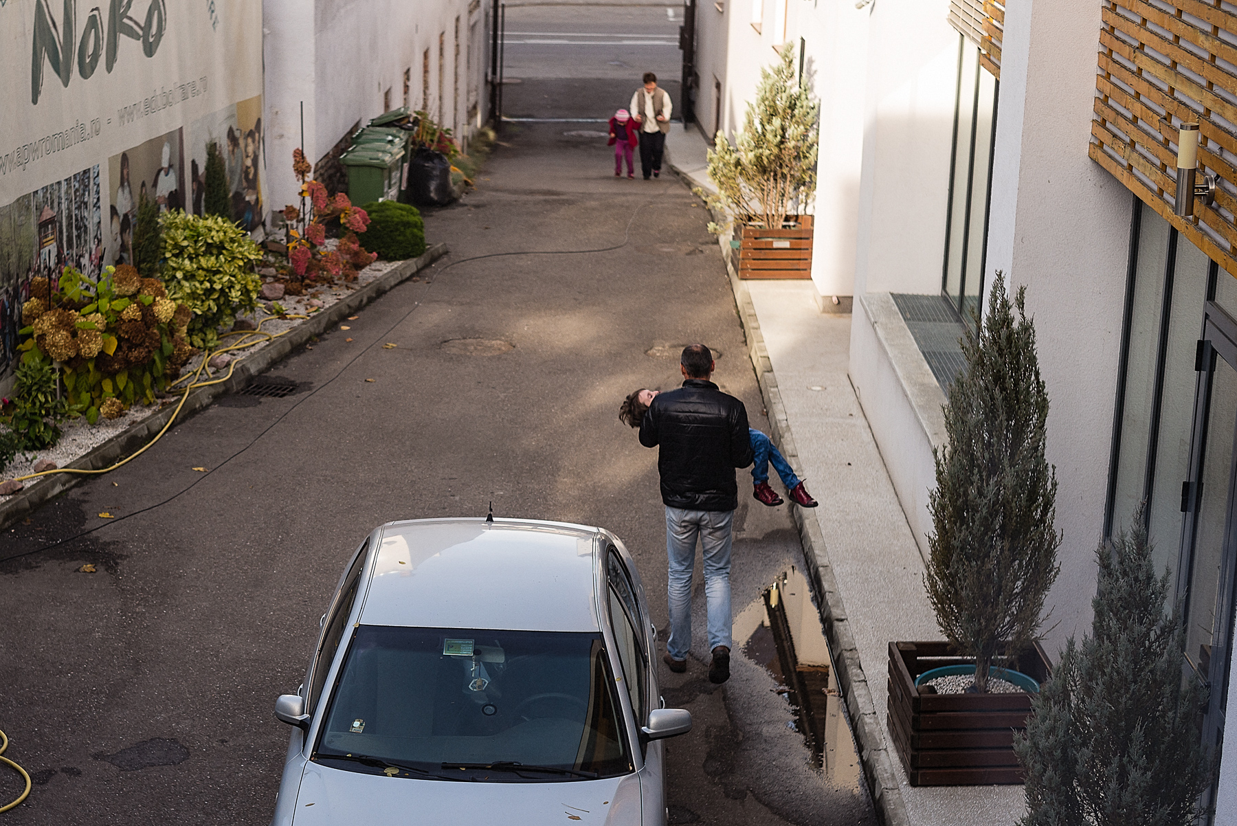 Ies din încăperea luminoasă și mă ascund în mașină. Plâng și mi-e rușine că plâng și mă gândesc la Vera care face asta zilnic, la părinții eroi ai acestor copii care au nevoie mai mult ca oricine de dragoste și de sprijin. Cosmin l-a cunoscut azi pe Moise, un băiat de opt ani care face în minte calcule matematice complicate și căruia îi place mai mult să stea la povești cu adulții, decât cu copiii. După ce vom pleca din Zalău, Cosmin se va gândi adesea la Moise, care are distrofie musculară și care va merge tot mai greu, până când va ajunge într-un scaun cu rotile, apoi, peste 5 ani, 10, 20, doctorii nu pot spune în cât timp evoluează boala, nu se va mai putea mișca deloc. Plângem amândoi și ne e rușine de smiorcăiala noastră și de slăbiciunea noastră, ascunși în mașina parcată în curtea Centrului NoRo, până când Vera, care și-a terminat programul, ne bate în geam. Ne prefacem că n-am plâns și că nu ne tremură vocile, iar Vera se preface că nu observă.