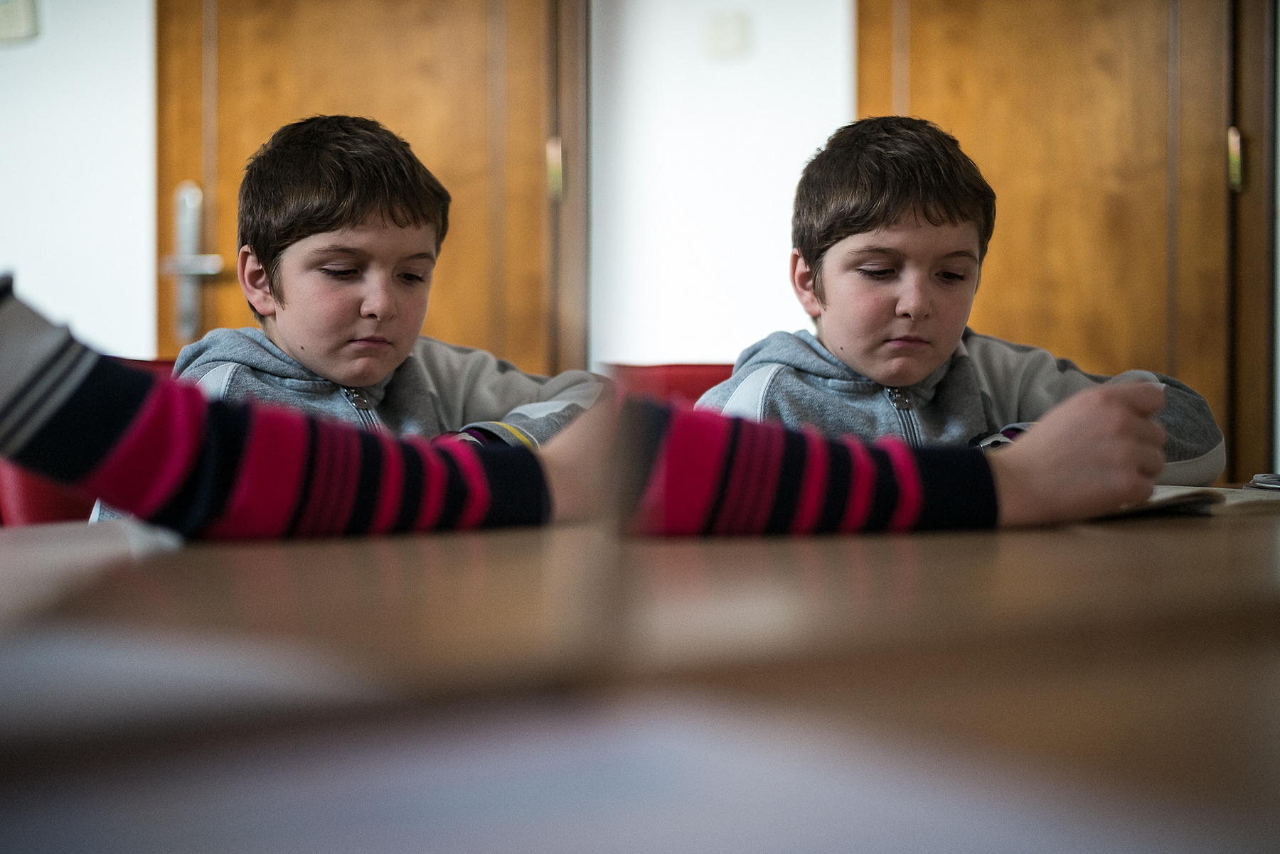 Plânsul lui David nu o convinge pe mama lui, care rămâne în spatele său și îl ține de umeri. E o femeie cu sprâncene groase, trăsături ascuțite și cearcăne grele, care pare să nu râdă niciodată. E nemișcată în voința ei: David o să rămână aici, David o să se oprească din plâns, David o să stea într-o bună zi pe scaun și o să învețe să vorbească. Nu degeaba pe bluza lui scrie „Best kid ever“.